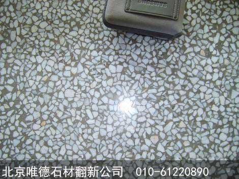 水磨石翻新處理之后硬度可以達到麻石的硬度,表面光澤能達到70度以上,處理完畢后的水磨石表面有著非常好的優點,耐磨、防滑、防污、耐酸堿,與其他性質同花崗巖類似,水磨石日常保養的時候不用經常打蠟,一個月看本月的人流量做好局部的拋光打磨,可以保持長久良好的表面效果。
