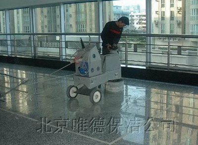 6、結晶處理;對大理石表面進行結晶,然后用多功能洗地機清洗,然后將一些藥水配合灑在地面上,開始研磨,熱能可以使表面形成晶華作用。
