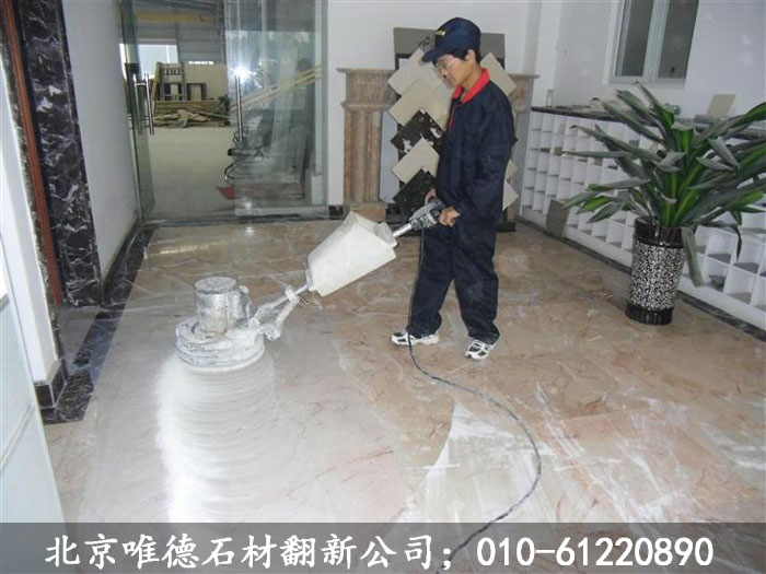 2、再用結(jié)晶劑配合結(jié)晶粉或是藥劑開始研磨。